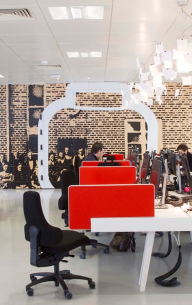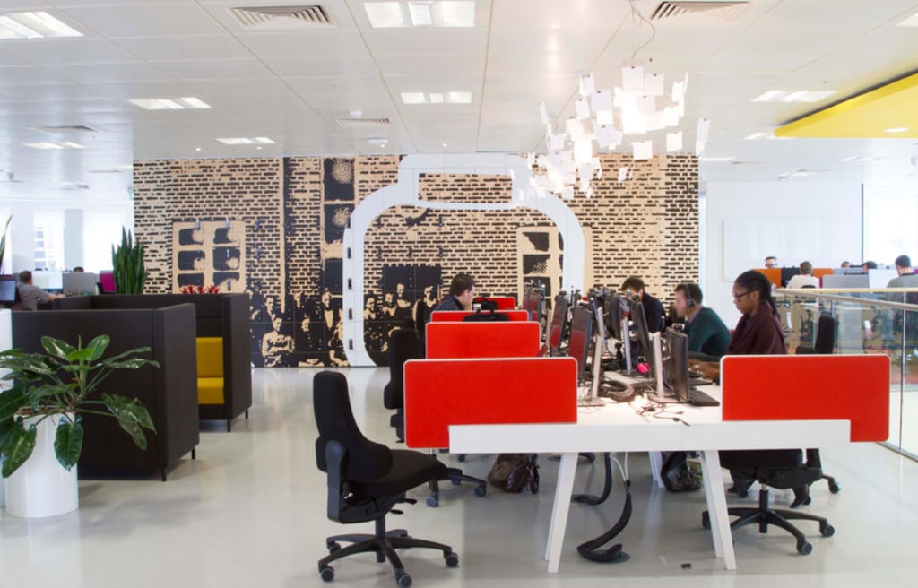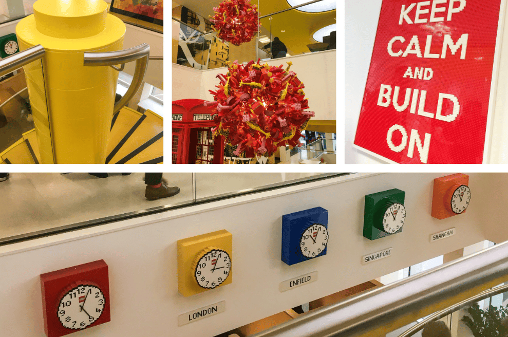 O ambiente físico em Londres foi projetado para ser acolhedor e lúdico. O uso de cores primárias, madeira clara e luz natural criou uma atmosfera casual que reduziu a hierarquia percebida.