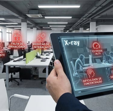 A aparência organizada e controlada de escritórios modernos cria uma sensação de segurança que muitas vezes mascara a presença de riscos negligenciados. Como consequência, diversas organizações concentram seus esforços apenas em programas de bem-estar ou saúde mental, deixando de lado fatores ambientais que também impactam diretamente a saúde dos trabalhadores.